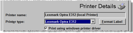 If you find that this option is disabled (greyed out) and therefore you cannot select it, this means that you cannot use Windows drivers to print reports on that printer type.
