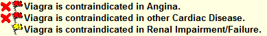 The following example displayed in the Dispensary tab advisory box contains both a contraindication Level 1 (red flag) and a contraindication Level 2 (yellow flag) - use with caution.