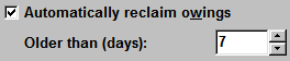 The system can automatically reclaim owings older than the default number of days.