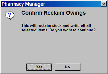Pharmacy Manager will reclaim the stock and write in the patient record "written-off owing".