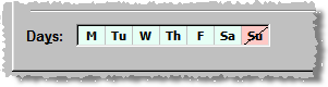 By default, Pharmacy Manager assumes every day except Sunday within the period is a working day, and signifies this by the presentation of the days
