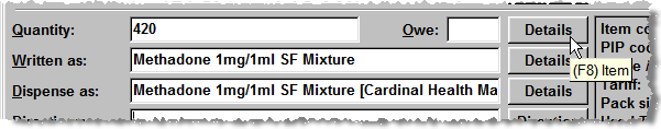 to bring up the prescription item details screen.