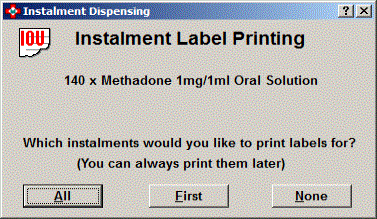 A prompt appears giving you the option of printing all the labels for each instalment in advance or the label for the first instalment only. A third option allows you to defer printing until a later time.