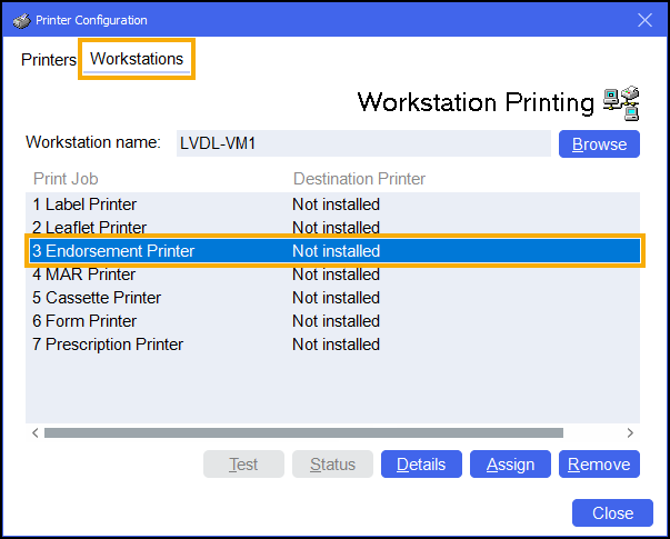 View the Endorsement Printer for your workstation, if a printer is not already assigned, select Assign