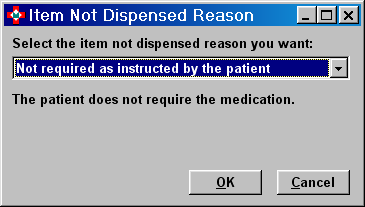 Click Issue or Finish to confirm the Not dispensed item, and unless the prescription is completed, Pharmacy Manager will continue with the next item.