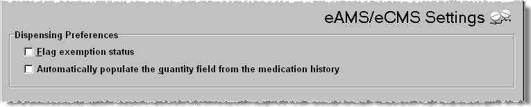 Menu > Tools > Pharmacy Details > eAMS/eCMS settings tab