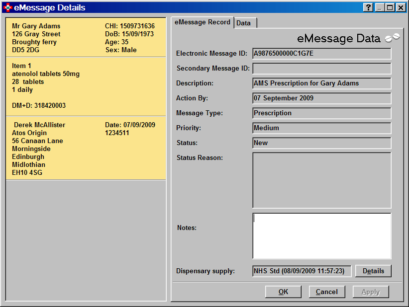 Once an electronic prescription has been received and you have selected/highlighted the transmission on the eMessages tab, the next step is to confirm the identity of the patient and to discover whether the patient already has a patient record in Pharmacy Manager before going on to dispense the items.