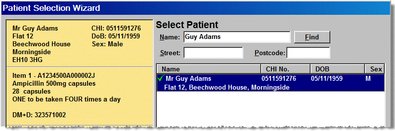 Once a patient has been the recipient of an electronic prescription, their personal details will be synchronised with those on their GP's system. Subsequent prescriptions will be identified by a patient's unique CHI number.