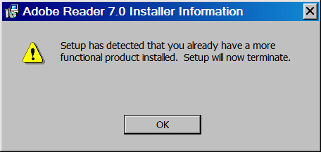 In the event that the installation process discovers a more recent version already installed, an alert appears.