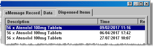 The Dispensed items tab lists all the items and iterations that have been dispensed so far for this serial prescription.