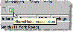 Click the show/hide prescription button once from the standard position (see below left) and the mock-up prescription is hidden, allowing access to any of the hidden functions (see below right).
