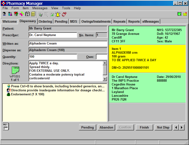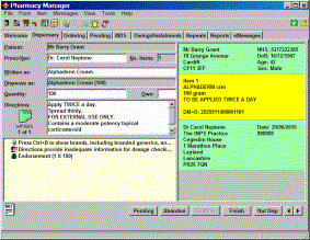 Select the Pending tab to retrieve the prescription in order that it can be processed further.