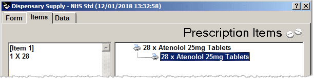 For example, the drop down list below reflects each of the two items above that are both single item prescriptions.