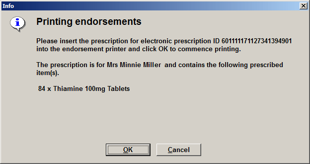 You will be prompted to feed each prescription in turn into the endorsement printer. The prescriptions are identified in sequence by their electronic prescription ID.