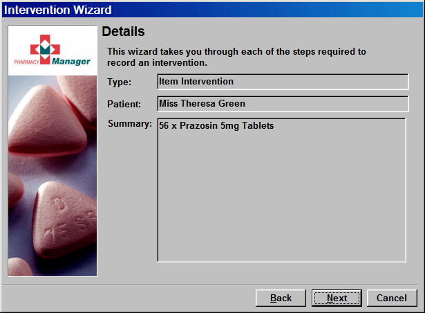 If the intervention is the result of a specific reason e.g. an interaction, this screen will not appear.