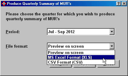 Select Toolsand selectProduce quarterly summary of MURs.