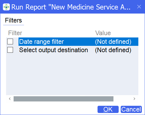 From the list of available reports, select New Medicine Service Activity report and then select Run: