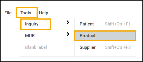 Select Tools - Inquiry - Product: