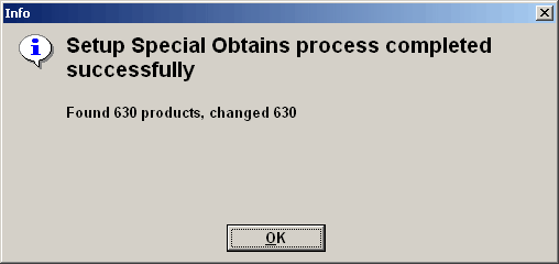 Upon completion, the system indicates how many products have been changed to AHDL special obtains status.