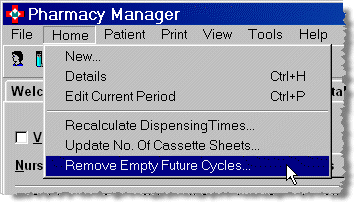 This option looks at the medication periods for the selected home and, starting with the date furthest in the future, checks if period can be deleted based on the following statements being true: