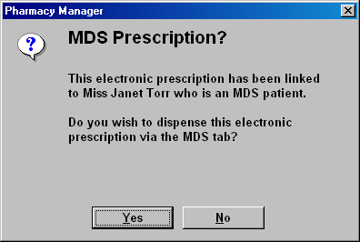 Alternatively, click the No button to proceed to the Dispensary tab via the Patient selection wizard.