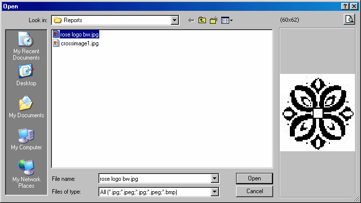 The Open window will close and a preview of the chosen image will be displayed on the Custom tab.