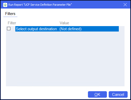 From the list of available reports, select UCF Service Definition Parameter File and select Run: