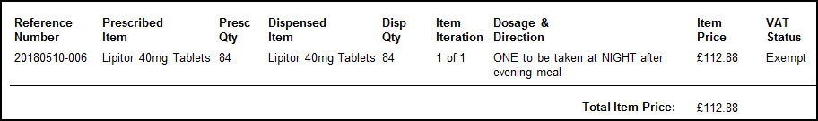 - The item price for each prescribed medication
