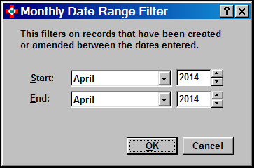 - If the default dates do not cover the period on which you wish to report, click the drop-down arrow adjacent to the either the Start and End months, or both in turn.
