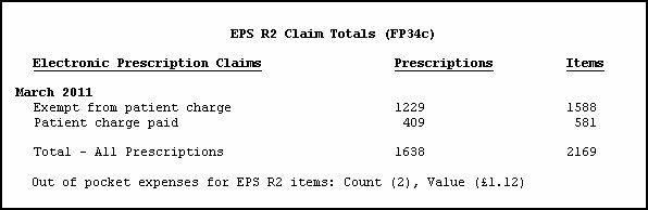 The NHS Totals (FP34) Report records all prescription statistics including paper prescriptions plus EPSR1 and EPSR2 types. The FP34C report covers EPSR2 prescriptions only, once they have been claimed.