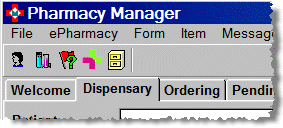 To start dispensing you need to access the Dispensary tab. This can be done in either of two ways: