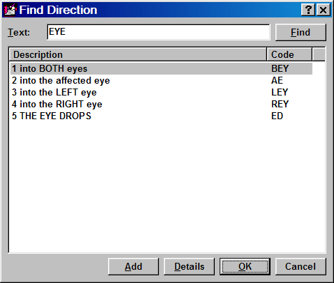 Directions can be added quickly using dose codes, or typed in full into the Directions box.