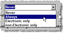 Always would be useful when you have built up a history of products you dispense. However, to begin with, you may prefer to leave this as Never.
