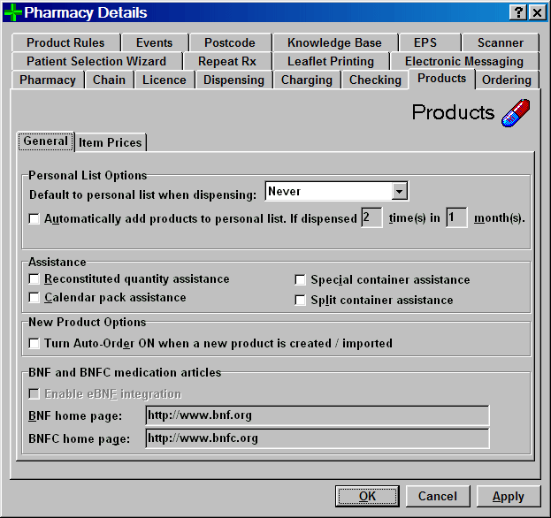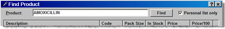 To speed up the creation of the personal list, you can set Pharmacy Manager so that it adds products to your personal List as you dispense them. In this way, you will build up a list of products that you use, and this list will be much shorter. When you dispense, you can search your personal list first. If an item is not found, then you can revert to the full list.