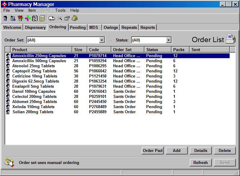 The Ordering screen is used to generate, edit and send