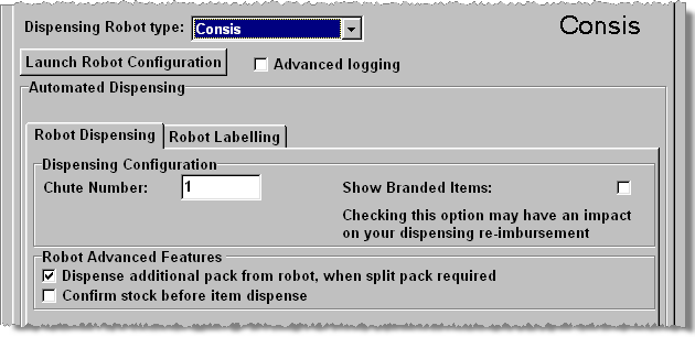 A further option exists to enable record communications between Pharmacy Manager and the robot.