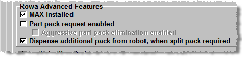 This option, when selected will dispense an additional pack from the robot when a 'part pack' is required. For example, an item packed in 28s, for which 42 is being dispensed, will release 2 packs without further prompting. The unused balance is transferred to shelf stock.