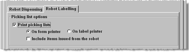 A picking list can be printed to assist in identifying stock locations for items that are held both in the robot and on the shelf.