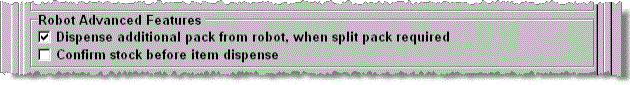 This option, when selected will dispense an additional pack from the robot when a 'part pack' is required. For example, an item packed in 28s, for which 42 is being dispensed, will release 2 packs without further prompting. The unused balance is transferred to shelf stock.
