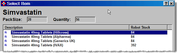 Pharmacy Manager can handle the selection when stock of an item from more than one manufacturer is held in the dispensing robot.