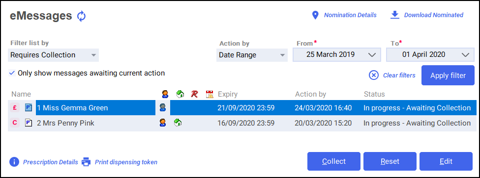 Once a prescription has been dispensed and handed to the patient, it should be marked as ‘collected’ within Pharmacy Manager. Marking a prescription as collected will automatically send a Dispense Notification to the NHS Spine.