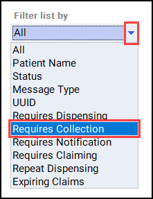 . The eMessages screen displays. - Select the Requires Collection filter: