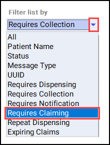 . The eMessages screen displays. - Select the Requires Claiming filter: