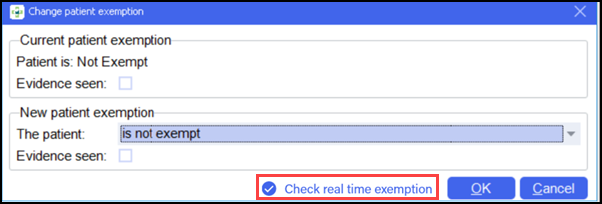 - The patient’s exemption status displays.
