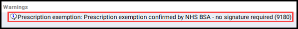 - Select the Patient exemption text in Warnings.