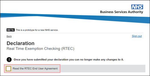 Select the I agree and accept this declaration checkbox and select Submit