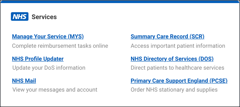 The NHS Services screen allows you to access a variety of NHS services.