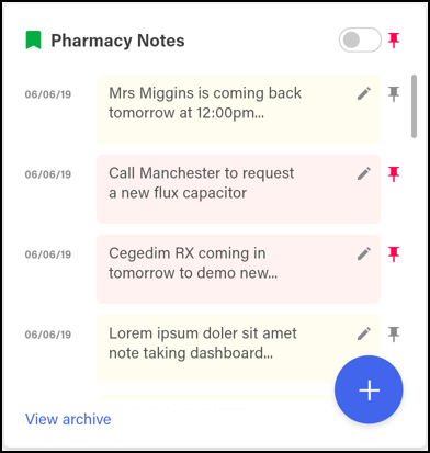 - View Pinned Pharmacy Notes Only - Select the Pin toggle