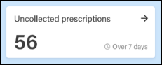 The Uncollected prescriptions tile displays the number of dispensed prescriptions which have been ready for collection for more than 7 days. Select the tile to display your eMessages screen with a Show messages that require collection/Over 7 days filter applied.