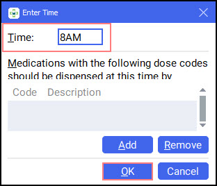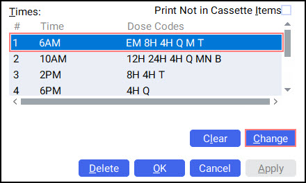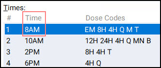 From Times, select the administration time slot you want to amend, for example, 6AM.